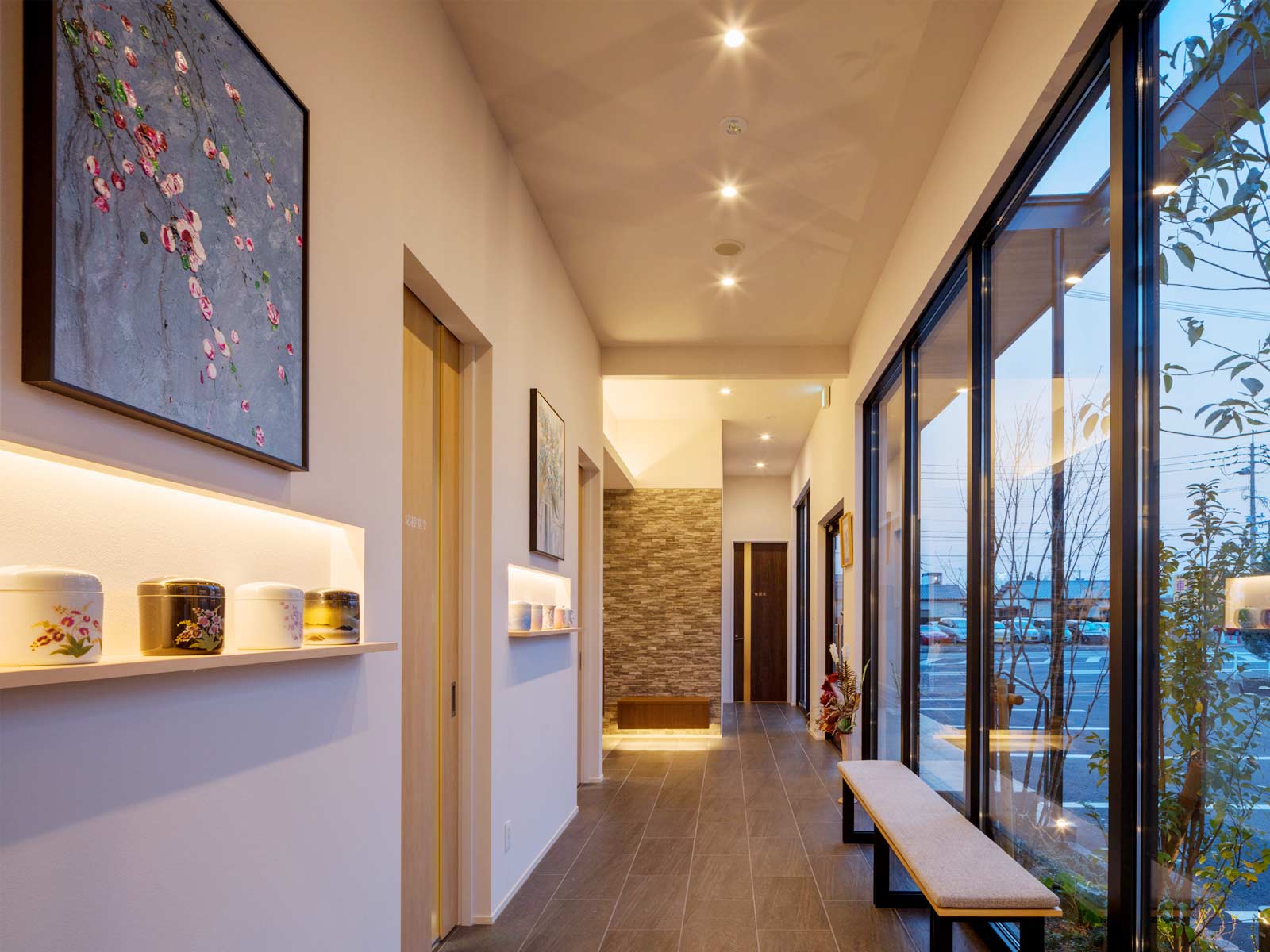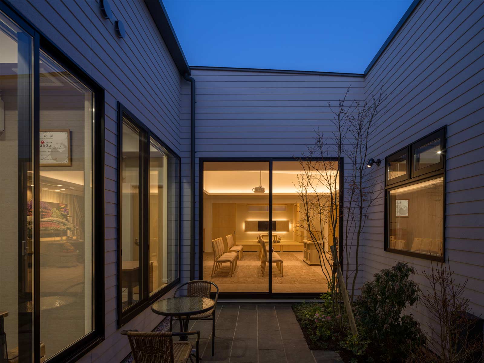 家族葬ホールに隣接する中庭。緑が溢れ心地よい空間を演出いたします。