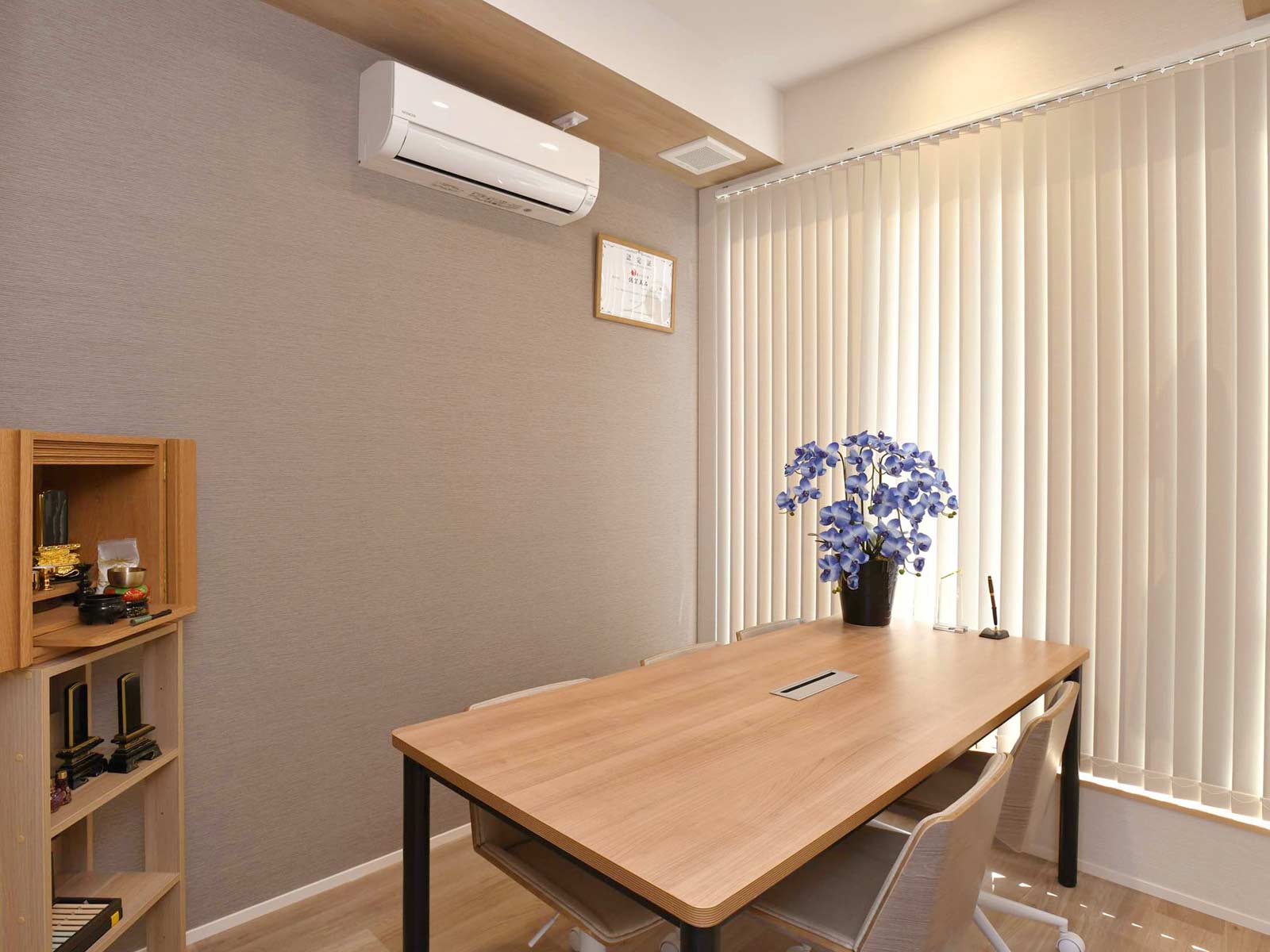 事前相談や葬儀お打合せで使用する応接室。完全個室でプライバシーも守れます。